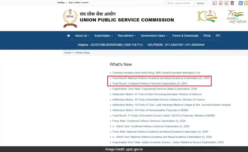 UPSC Announces Final Results for NDA and CDS Exams 2025