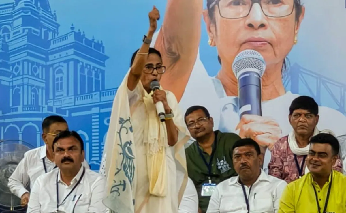 Banerjee made references to notable Bengali figures such as Rabindranath Tagore, Bankim Chandra Chattopadhyay, and Nazrul Islam, reciting segments of their poetry. Additionally, she led chants dedicated to Hindu deities, invoking Durga and Kali while reciting hymns honoring Shiva. Throughout her speech, she took the opportunity to underscore government initiatives like ‘Lakshmi Bhandar’, prompting the audience’s women to signal if they had benefited from the program.